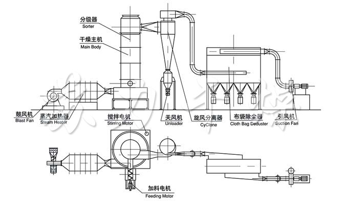 ● 干燥室內周向氣速高,物料停留時間短,有效防止物料粘壁及熱敏性物料變質現象,達到高效、快速、小設備、大生產。